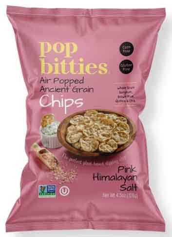Pop Bitties — Creators of “better for you”, all-natural, air-popped, plant-based Ancient Grain Chips & Sweet Potato Chips. Their products are certified gluten-free and non-GMO and are manufactured in a facility free of peanuts, tree nuts, eggs, wheat, soy, fish, crustacean shellfish, and mustard.